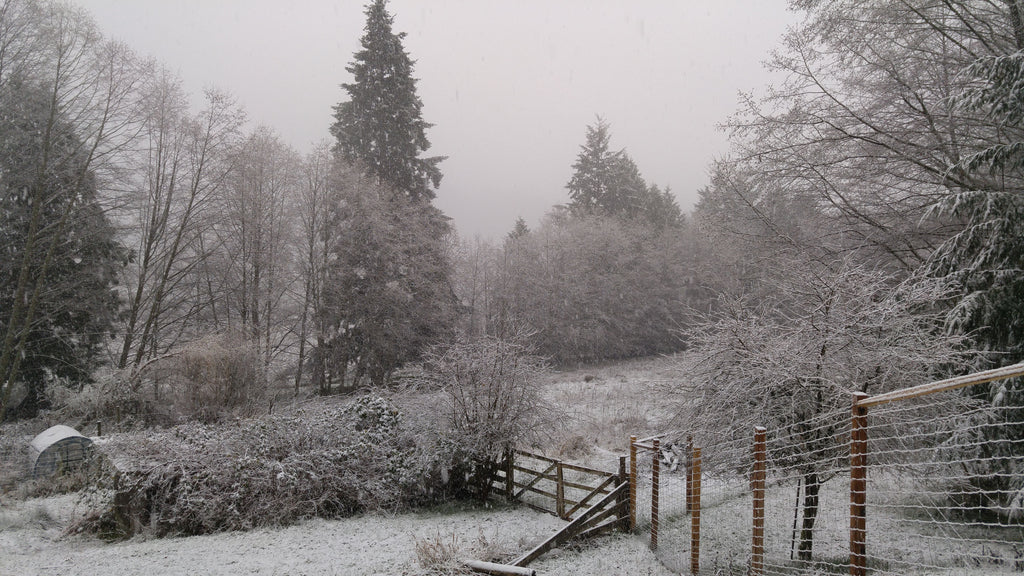 Hoar frost has etched the hibernating orchard and fields white. These days the winter sun rises low in the sky in the mornings, and by late afternoon disappears into Burgoyne Bay.